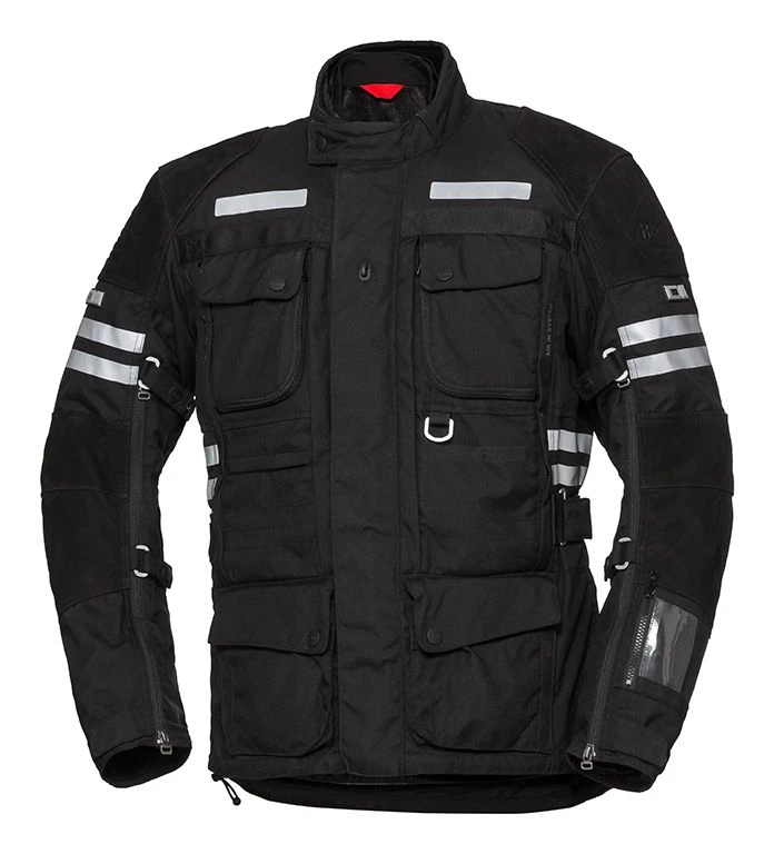 De IXS Montevideo-ST Tour LT is een motorjas die gemaakt is van 500D Airdura met lederen verstevigingen. Deze extreem functionele motorjas heeft een uitneembaar, wind- en waterdicht solto-TEX membraan en een polyester mesh voering met waterkering. De Montevideo-ST Tour LT heeft geen uitneembare thermovoering maar de jas kan uitgebreid worden met een thermo binnenjas. Deze is los in de winkel te koop.