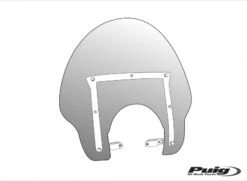 Het betreft een mooi windscherm met chromen strips en zorgt voor een betere windbescherming. Het windscherm wordt geleverd inclusief bevestigingsset. Totale hoogte 560mm, totale breedte 560mm, hoogte vanaf koplamp uitsnede 35cm. Kleur: transparant. Merk Puig. Past alleen op de Yamaha XVS950 ’09- / 1300 ’07- Midnight Star