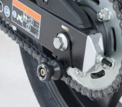 Wanneer er geen schroefdraad in de achterbrug is om een bobbin te monteren kan de R&G “Offset Cotton Reels” gebruikt worden. Zo kan er via de kettingspanner/achteras toch een bobbin op de motor gemonteerd worden en kan de motor dus met een paddockstand veilig en stevig gestald worden. Ook beschermen de bobbins de achterbrug bij een val.